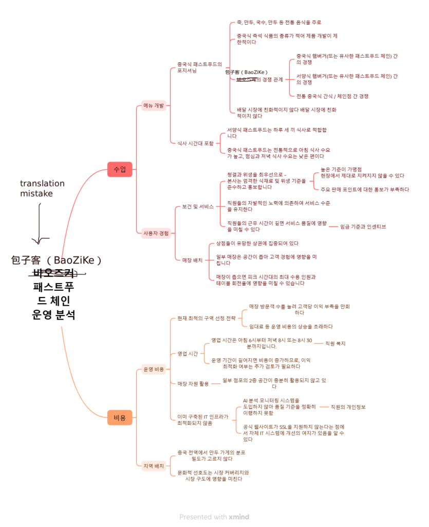 비즈니스 분석 다이어그램 (제 개인적인 경험을 바탕으로 제안한 전략이며, Xmind AI가 생성함):